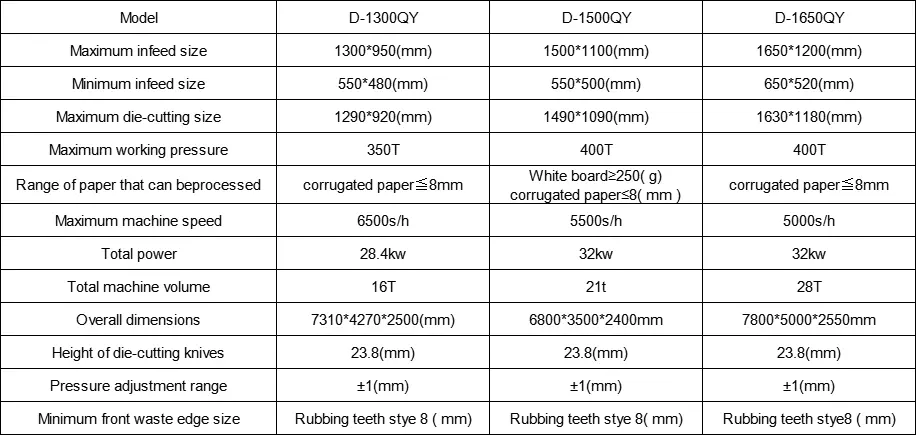 D1300Qy/D1500Qy/D1650Qy Vorderkantenpapier Fütterungsstirb-Schneidemaschine