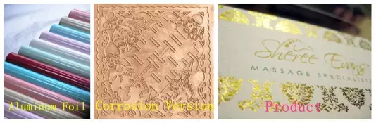 Bei einer bestimmten Temperatur und einem bestimmten Druck überträgt die Aluminiumfolie auf die Produktoberfläche, unterschiedliche Muster und Wörter mit unterschiedlicher Zink- oder Kupferkorrosionsversion.