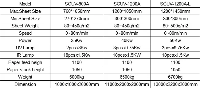 4: Der UV -Teil adoptiert 8-12 kW einstellbare elektronische Lichtquelle, die die Sicherheitsleistung erheblich verbessert hat als die herkömmliche Spannungsquelle -Lichtquelle. Die Lichtquelle kann die Helligkeit automatisch als Änderung der Laufgeschwindigkeit der Maschine einstellen, die von 30 geändert werden kann% bis 100%. Somit wird der durchschnittliche Energieverbrauch um mehr als 30 eingespart%.